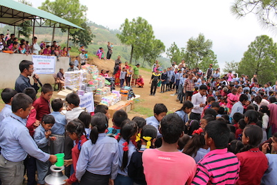 On the 4th July 2015, MCAF distributed our ‘Students Relief Pack’, which includes school bag, books, pens/pencils, eraser, sharpener, geometry box, lunch box, water bottle and shoes to 297 students of the Hillside Academy in Lapsephedi VDC – 4, Jaharshing Pauwa.
